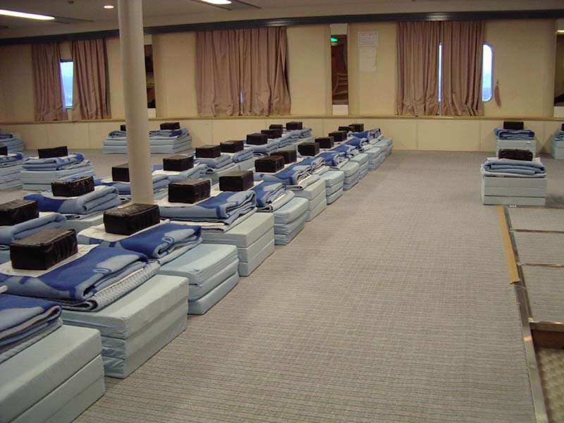 船の床面積に対する人数は、雑魚寝でも2段ベッドでも大して変わらないのでは?