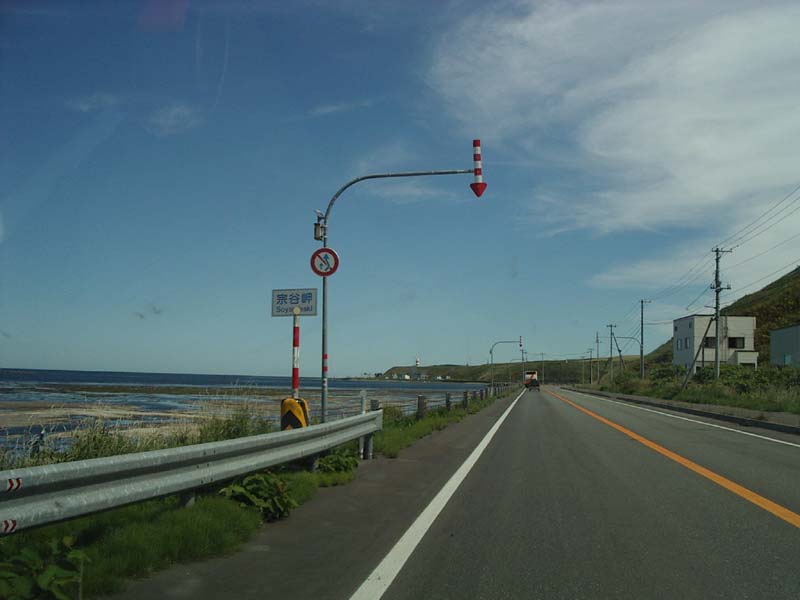 道路端を示す標識のせいで、まるで電車を運転している気分になる。