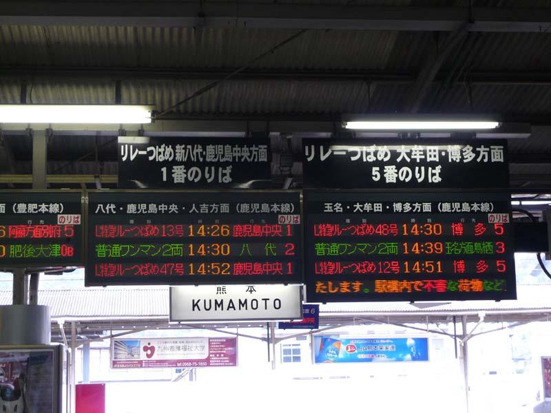 熊本駅は20分間隔で博多方面へ特急が発着している。