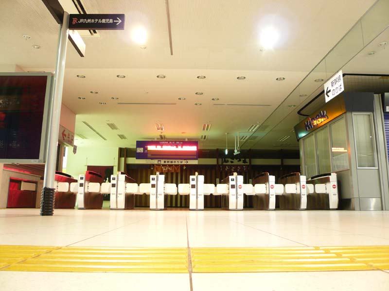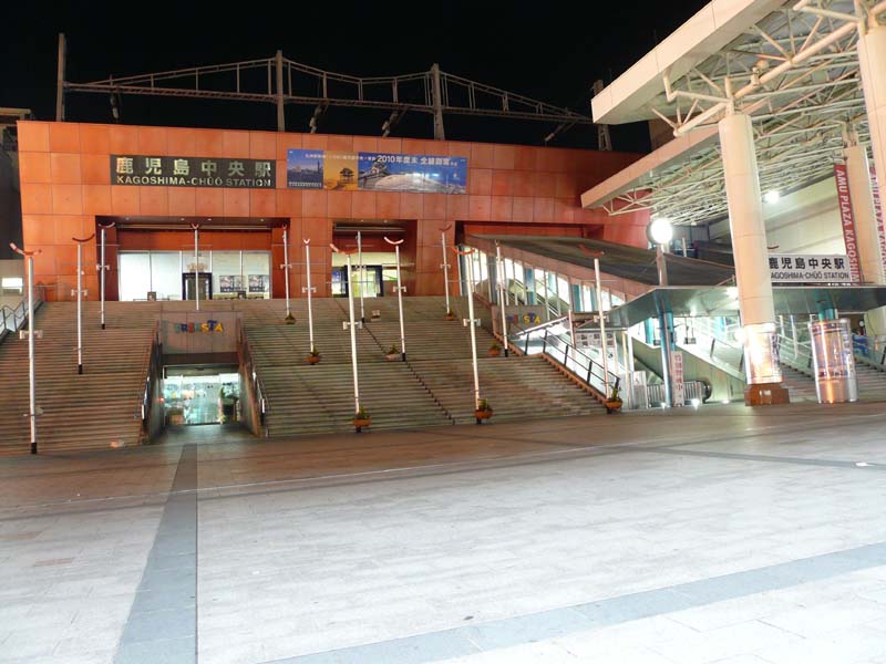 無人の鹿児島中央駅。スペイン階段が印象的。