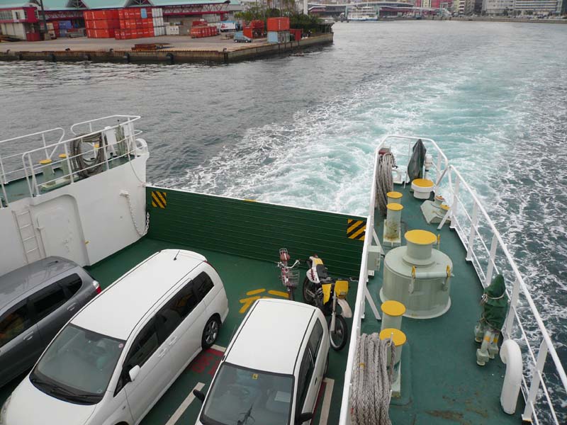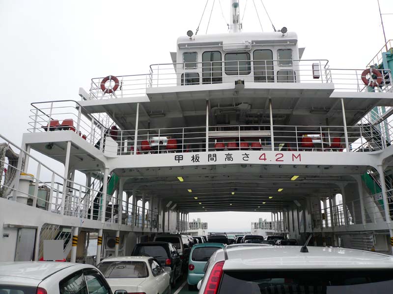 車載のフェリーだが、車を載せるときは料金所を通るなど、なんだか海上有料道路といった雰囲気。