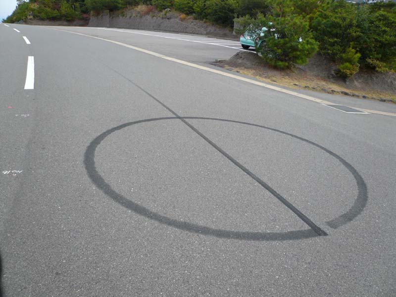 チャリで登っている最中、大型バイク5台くらいとすれ違う。これは彼らが残した痕跡であろう・・・