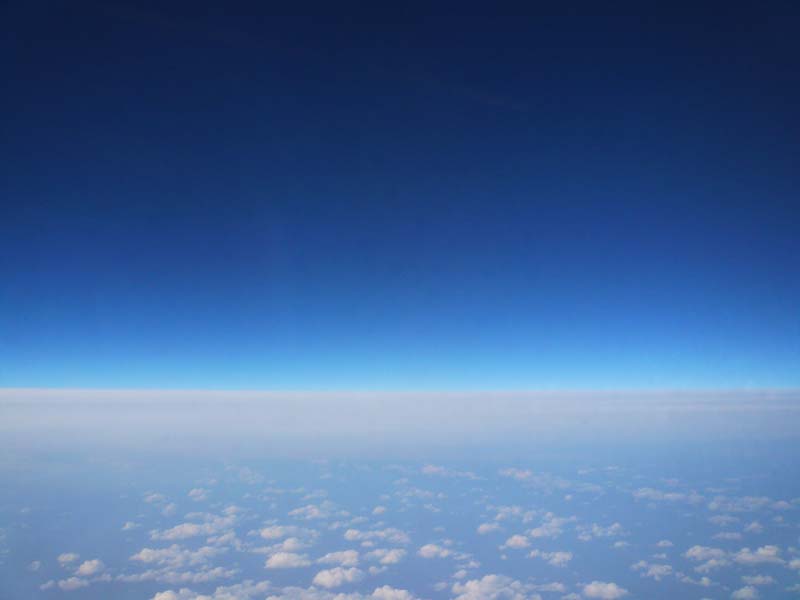 40,000ft以上の黒っぽい成層圏の空と違い、それほど色が濃くない。