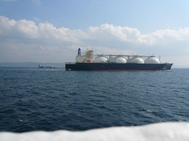 写真のあたりは低速だが、沖合いまで出てくると航海速力まで加速しているので、
