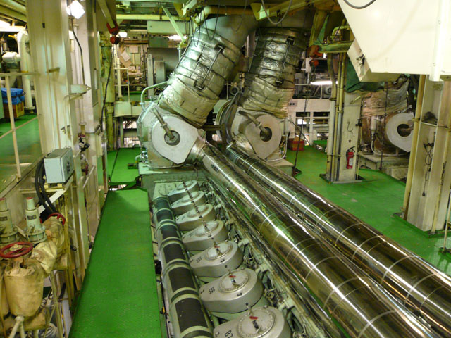 主機関。メインエンジン。ツインターボV18気筒4ストディーゼル×2機で2.7万馬力。