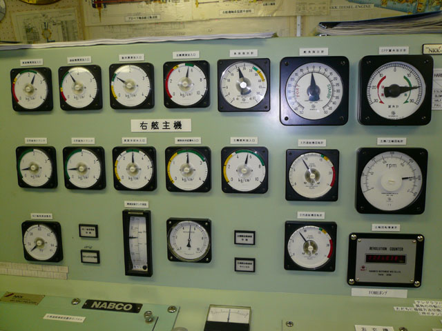 | 機関の回転数はどのくらいですか | 通常500rpm、低速時400rpmで、プロペラまでは減速機で40%に減速して接続しています。 | 500rpmとはかなり遅い。巨大なので当然だが、車のエンジンのアイドリングよりも低回転なのには驚いた。 |