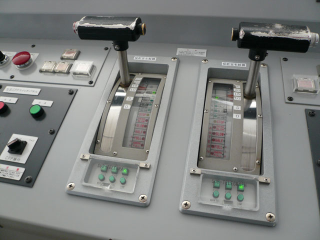 | スラストレバーは艦橋と機関室両方にありますがどちらが優先ですか? | 設定用の切り替え機があります。巡航中は機関室優先、港内では船橋優先のことが多いです。 | 妥当な設計。 |