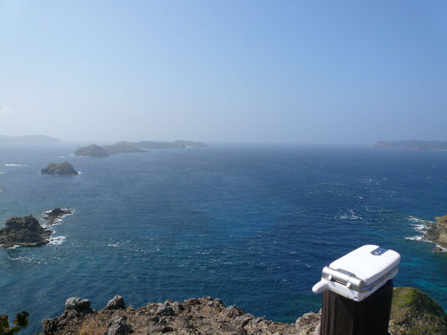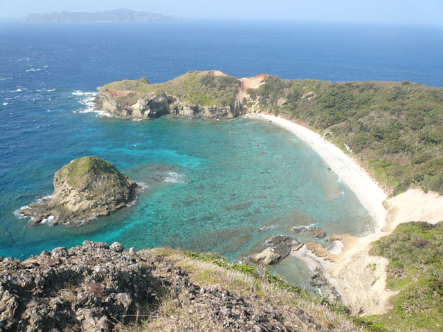 青い海がかなり綺麗。小さく見えるが、標高90mの山の上から見下ろしている。