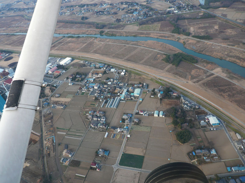 桶川飛行場は荒川の右岸にある。滑走路は600m。