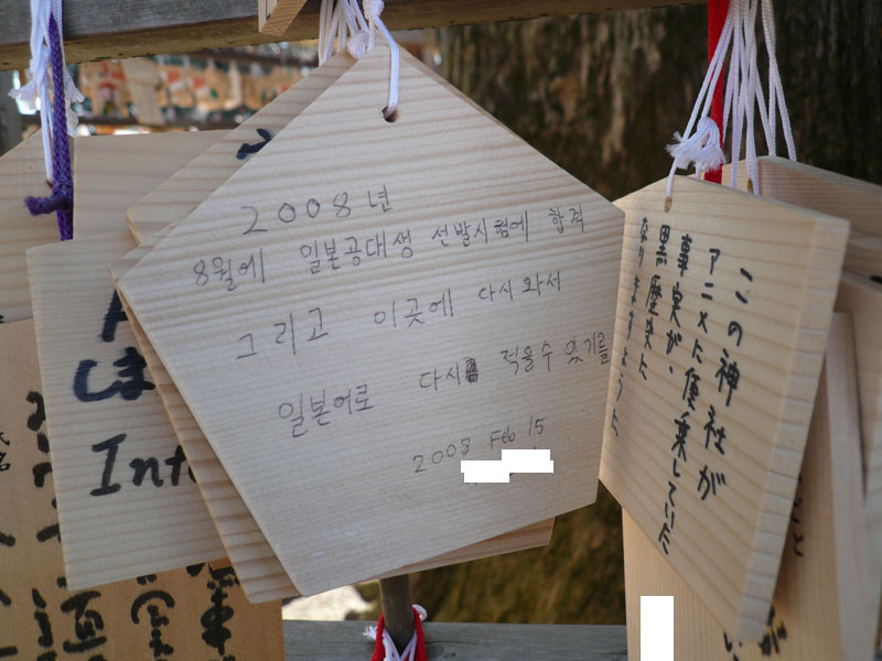 ↓のほうの写真にある韓国語の絵馬を誰かが訳してくれたらしく。