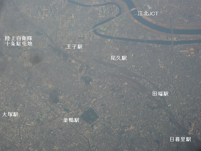 尾久の車両基地が見える。