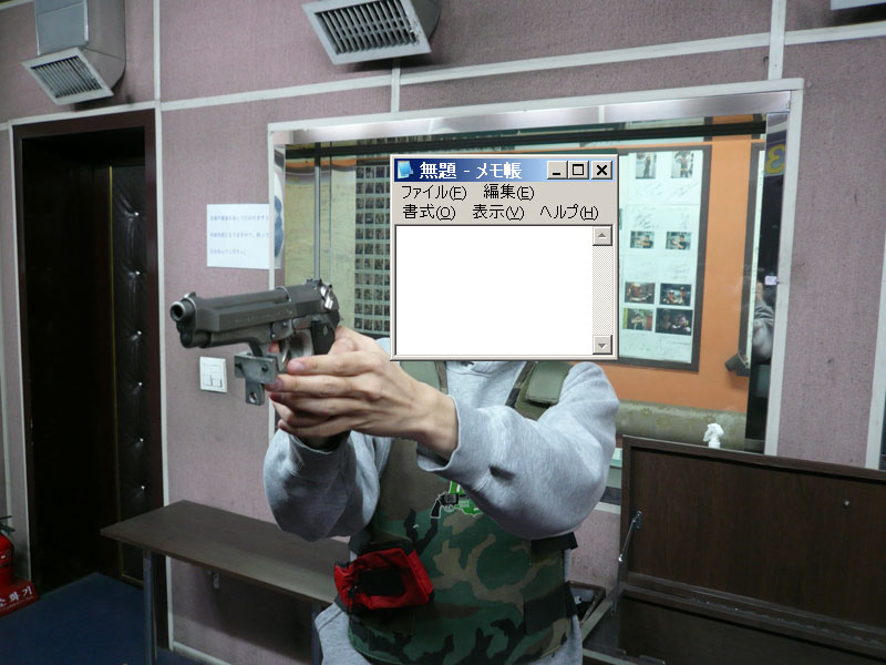 ベレッタ(口径9mm)を撃つが、意外と反動と射撃音が大きくビビル。