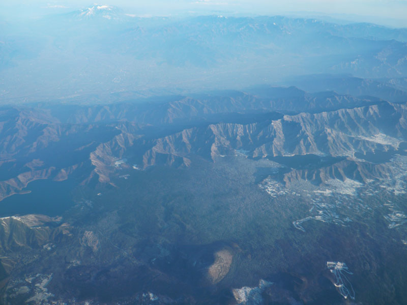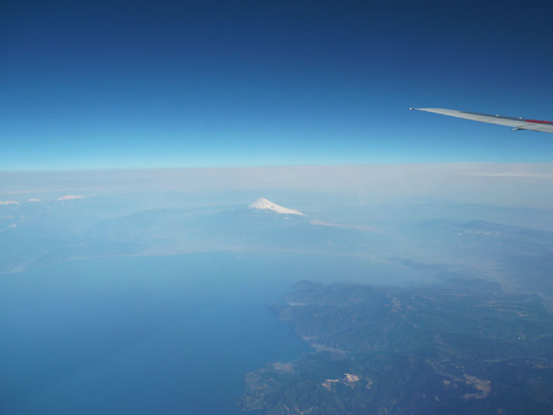 巡航高度(9000m程度?)に対して山の高さの割合がやや高いので、山が近くに見える。