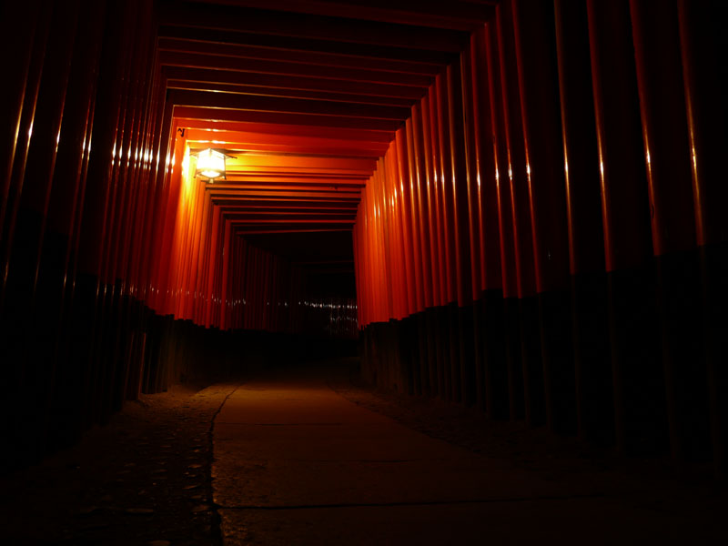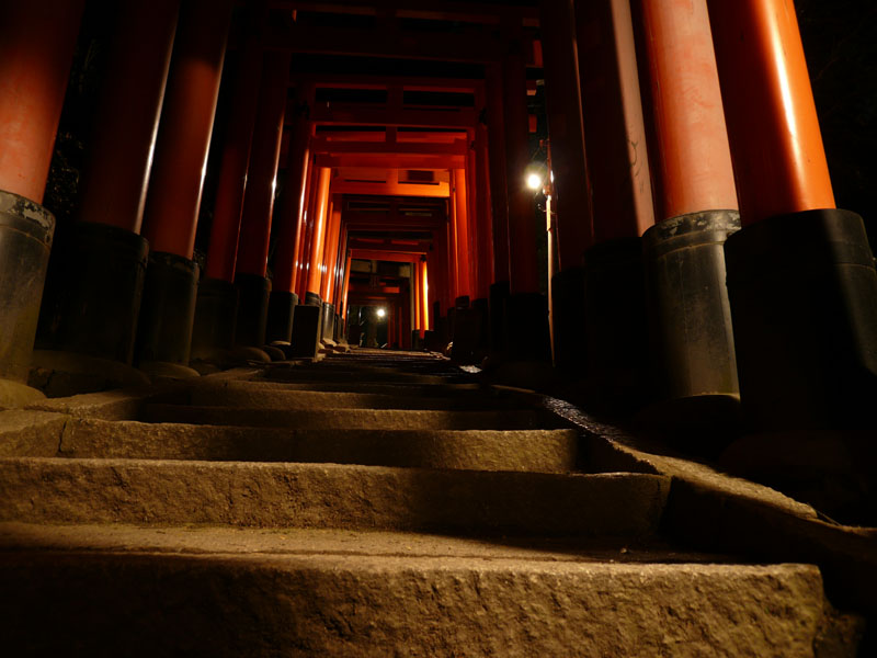 この奥まで千本鳥居が続くが、夜・無人の山なのでやや怖い。