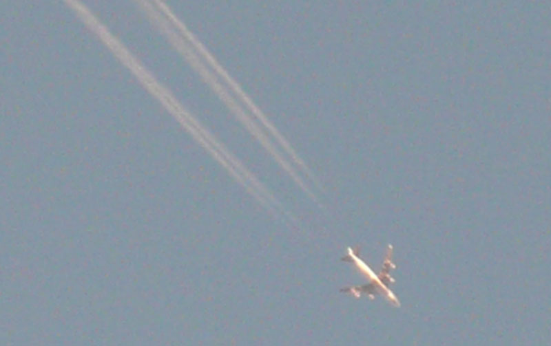 飛行機雲を4本引いているので4発機であることはわかるが、