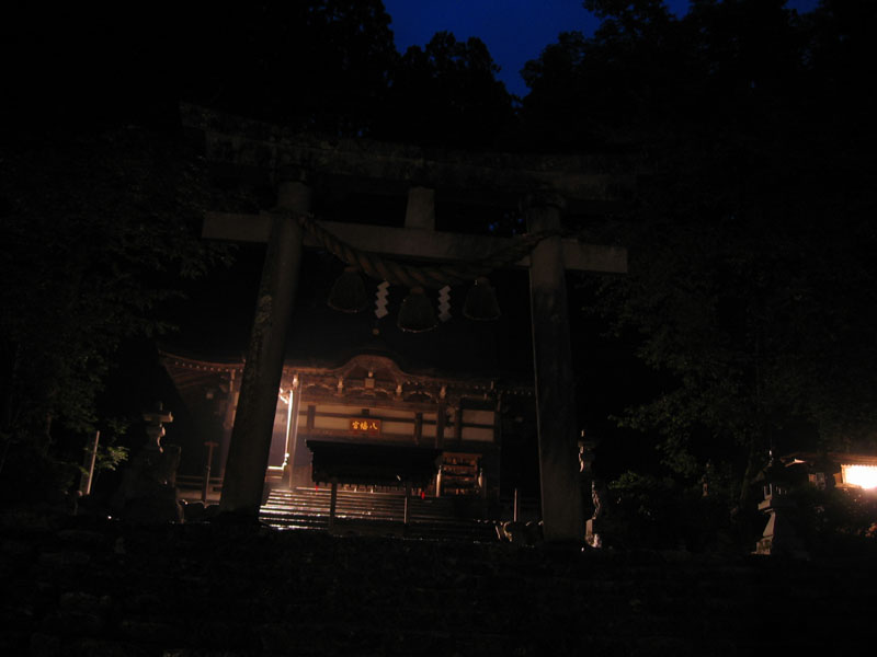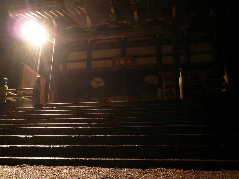 夜の神社は非常に暗く良い雰囲気。雨さえ降ってなければな。