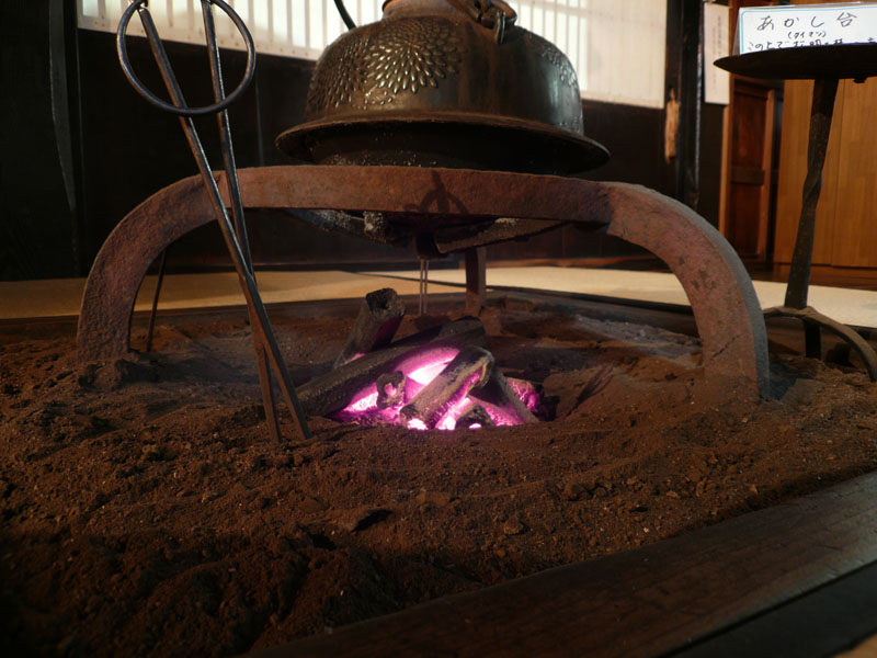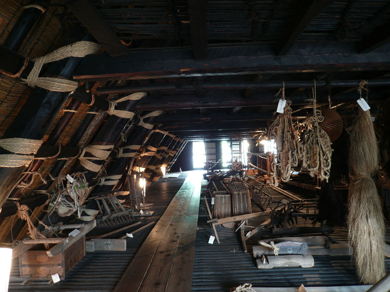 合掌造り家屋の内部。
