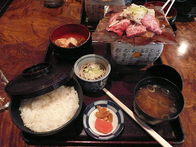 昼食は飛騨牛の陶板焼き。\2100。なかなかうまそう。