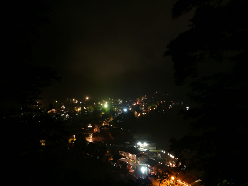夜の白川郷の集落。非常に暗く、露光時間は60秒。