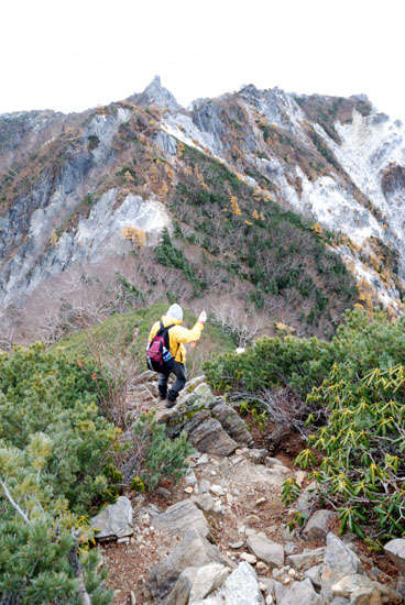稜線は大きな岩がゴロゴロしており歩きにくい。
