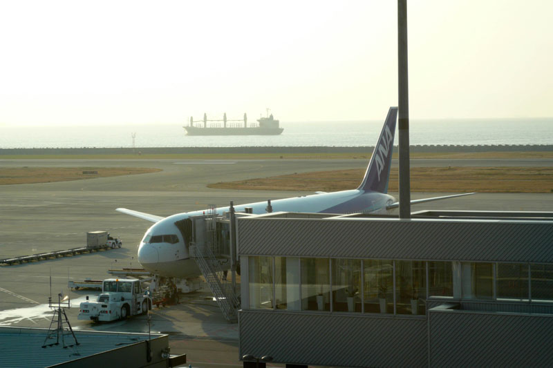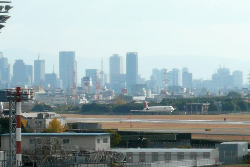 ターミナルビルからは、大阪の町並みがはっきり見え、距離が近いことを実感させる。