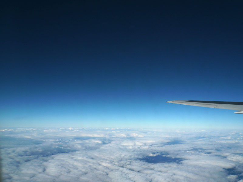 飛行高度が低いのか、普段よりは青くない。