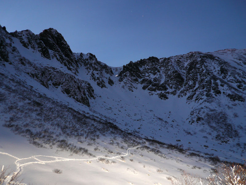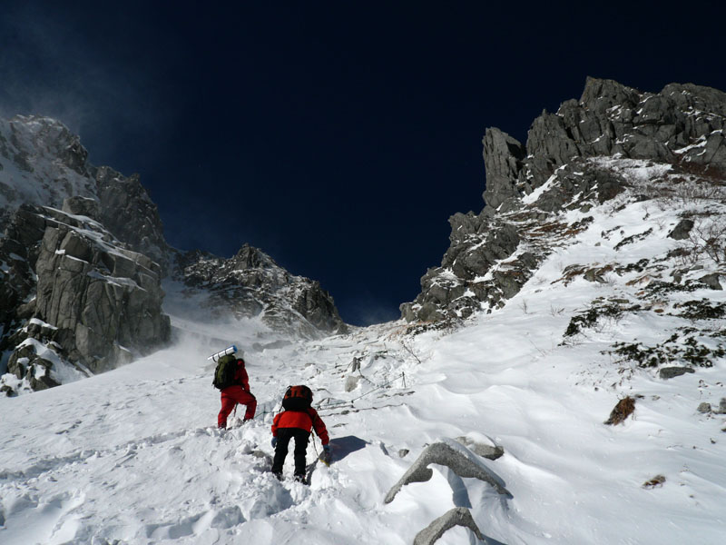途中で、「6本爪?やばいよそりゃ、稜線まで行けないよ」と言われる。