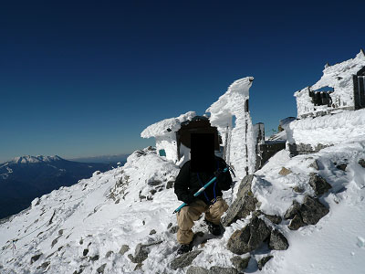 アイゼンやスパッツを外しているいると、普通の観光客の人から声を掛けられる。
