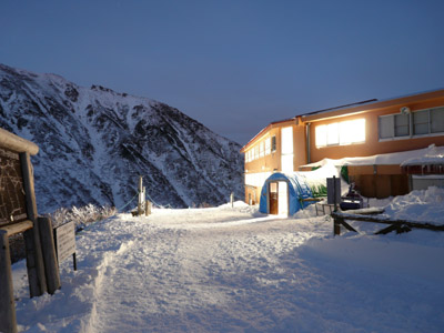 ホテルへ下る道は東側斜面なので、既に日が落ちて少し寒い。