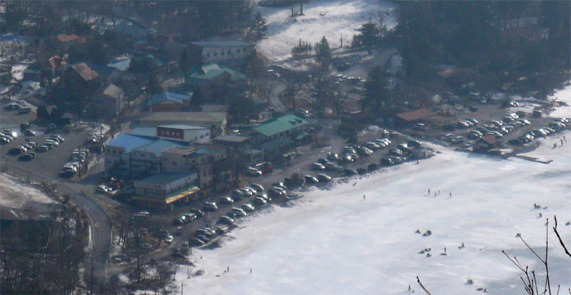小沼が見える、こちらも凍結しているようだ。