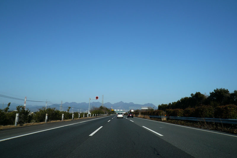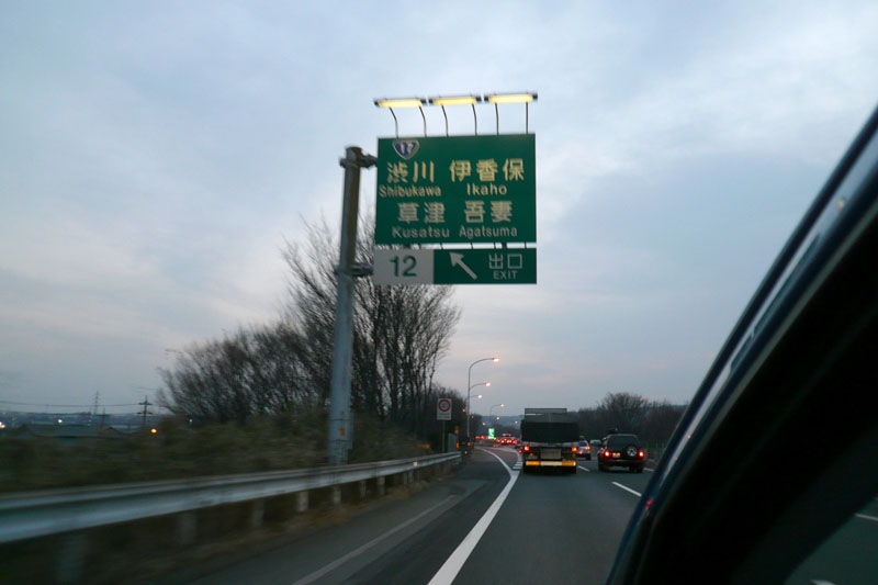 高速道路で正面に見えるのは榛名山。