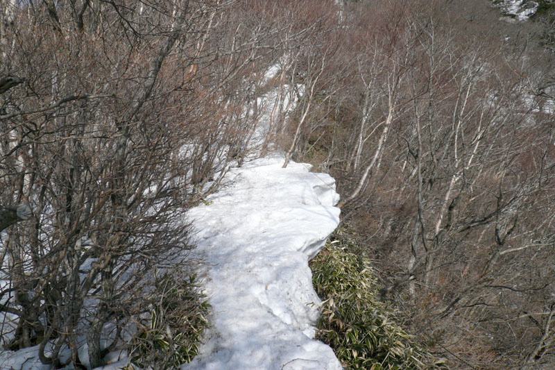登山道には、さすがに入り口から雪がある。