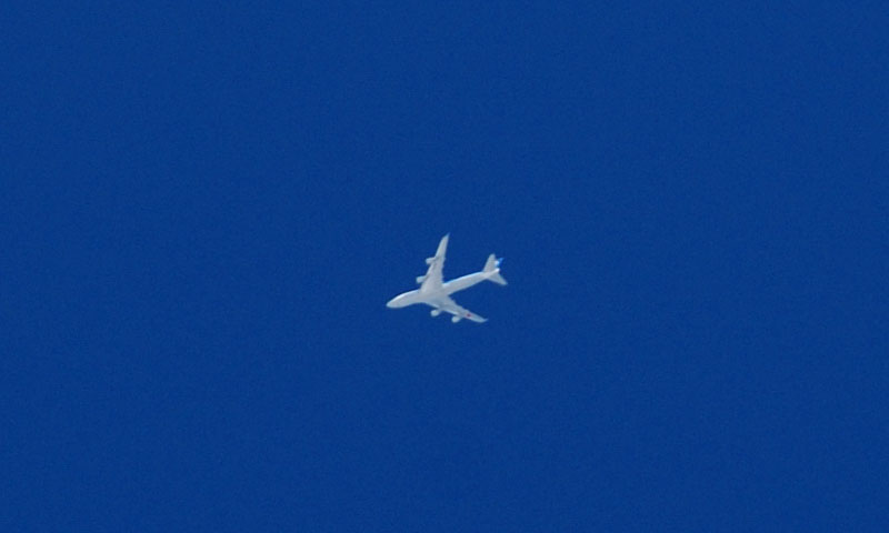 上空を飛行機が通過する。