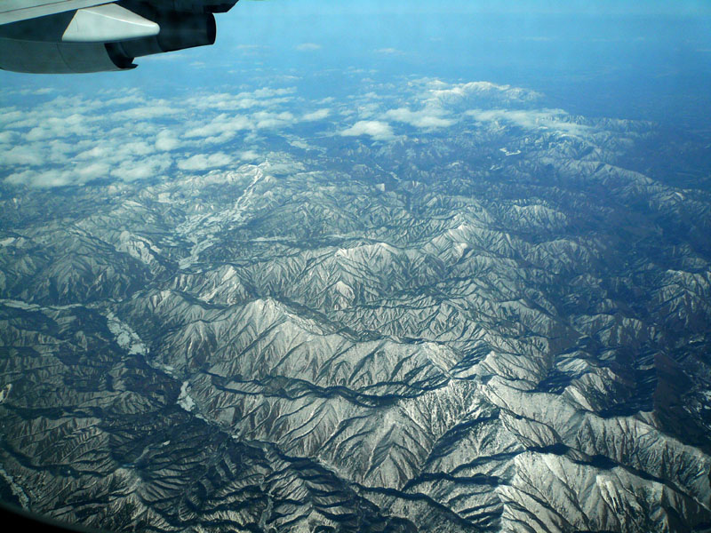 成田からシベリアルートへ至る航空機から撮影した福島県の奥深い山々。