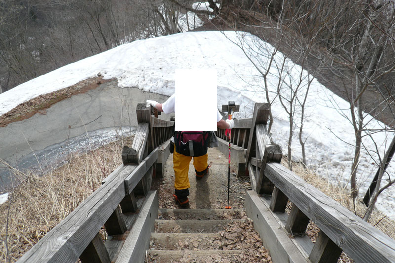 ネットで有名な、階段から始まる登山口。