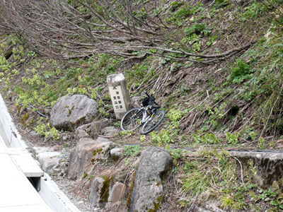 林道終点にはMTBが放置してあった。