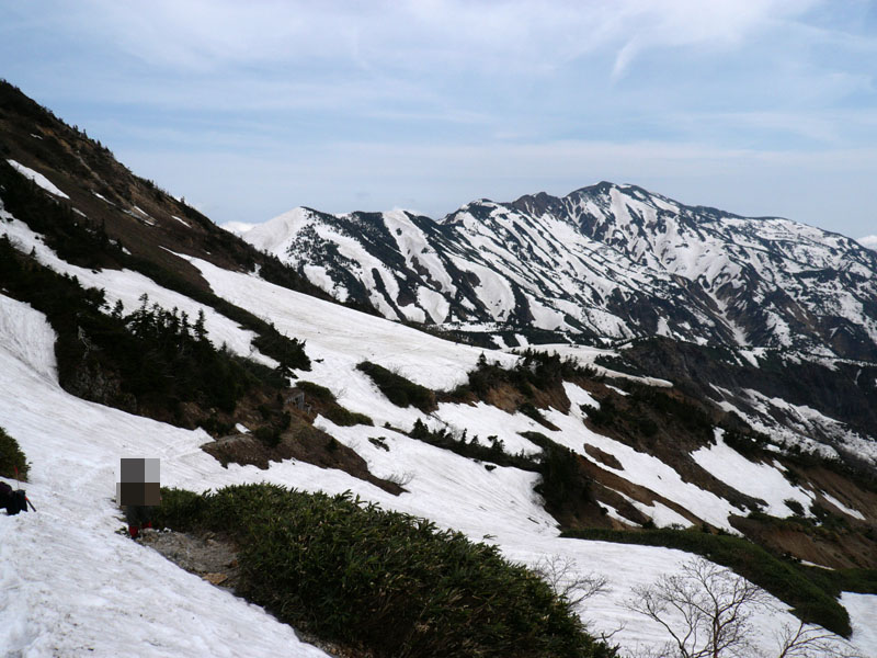 拡大するとこんな感じ、右の高い山は乗鞍岳(3,026m)、