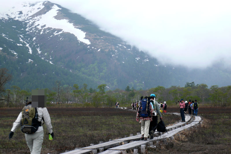 今回宿泊の「温泉小屋」に入るために尾瀬のメイン・ルートを外れると一気に人が少なくなる。