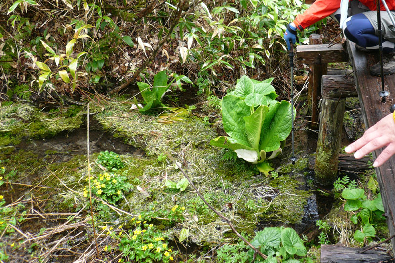 川とそれに沿ってミズバショウが。