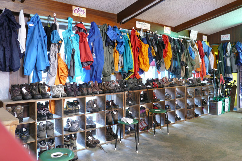 雨ということもあり玄関には大量の雨具が陳列されている。