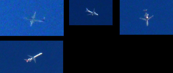 上空を抜ける航空機。左上のものはプロペラ音がしたが相当高度が高そうだ。