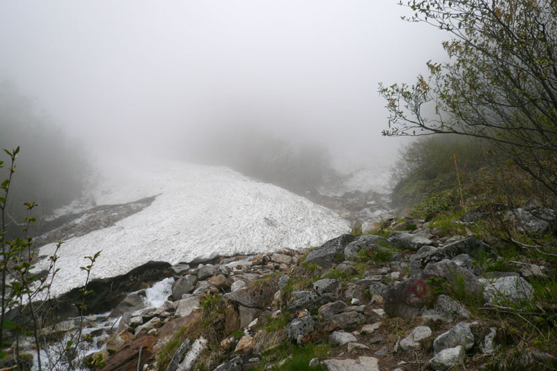 途中からは雪渓が出てきて、そこからはずっと雪渓歩きになる。