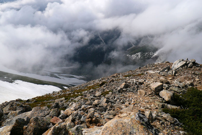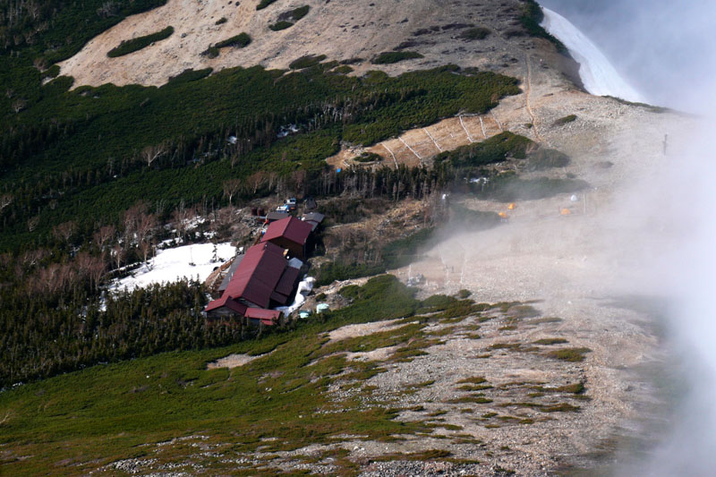 上のほうはガスが時折晴れるが、遠くまで見渡せるわけではなくダメそうな感じ。