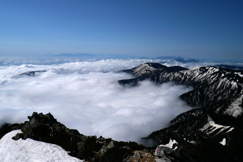 残念!!松本は天気予報どおり曇りのようだ。しかし山の上は快晴だ。