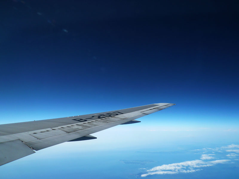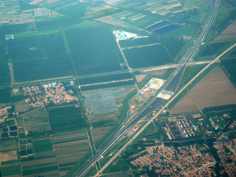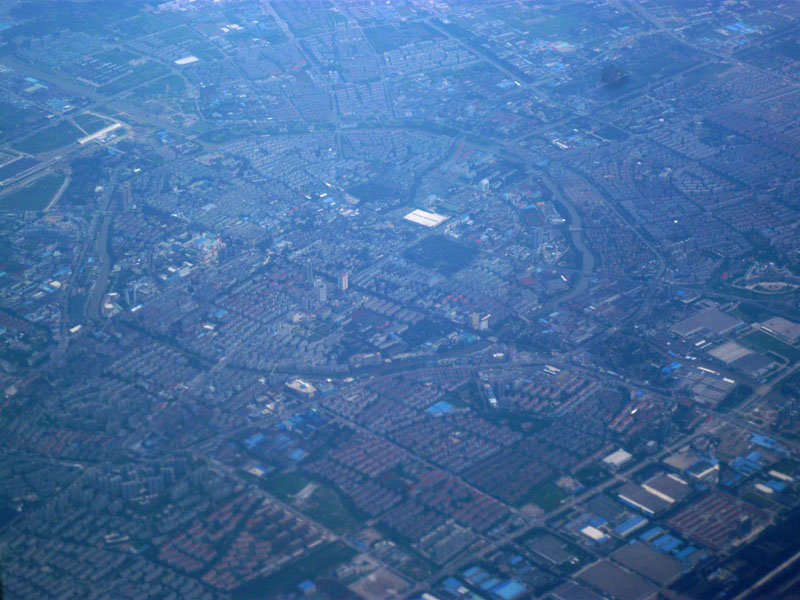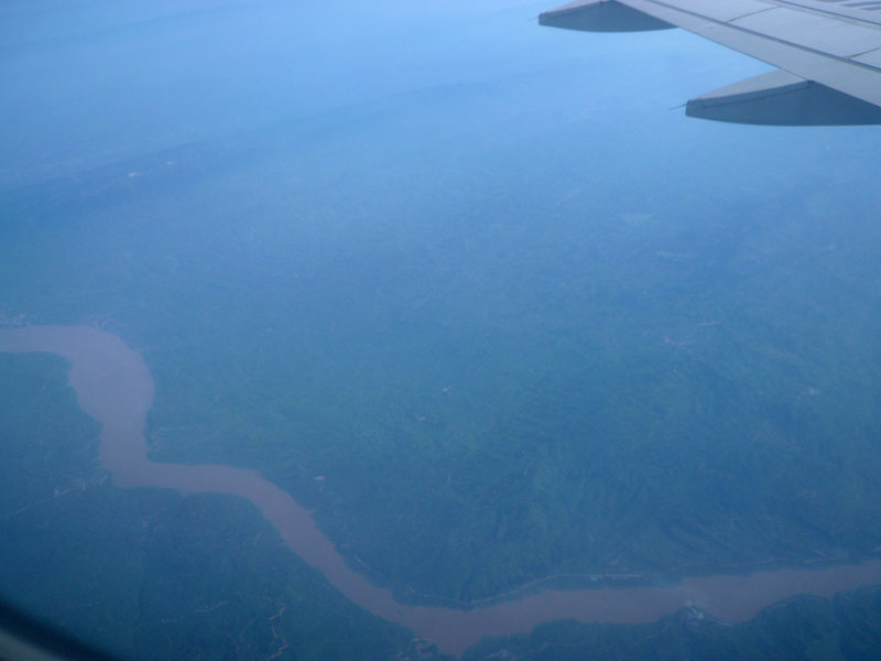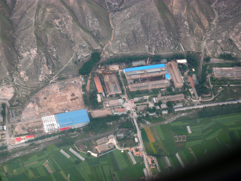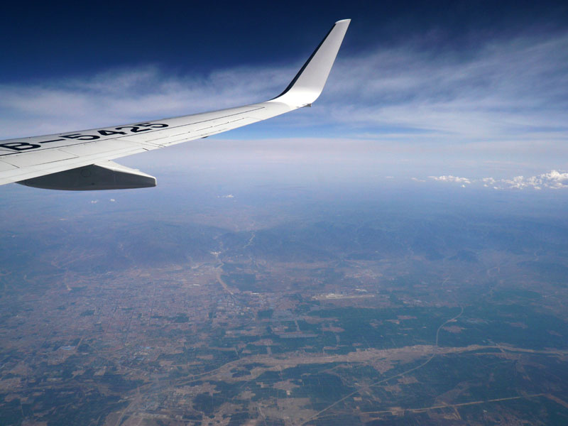 西寧へ向かう。距離2000km。離陸すれば中国の郊外の眺めがずっと続く。