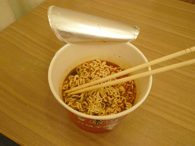 このカップめんはまさに国民食(?)といえるほどあちこちでみんなが食べている。