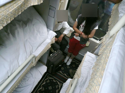 1等寝台は、2段式寝台。日本のB寝台(2段式)とほぼ同じ。