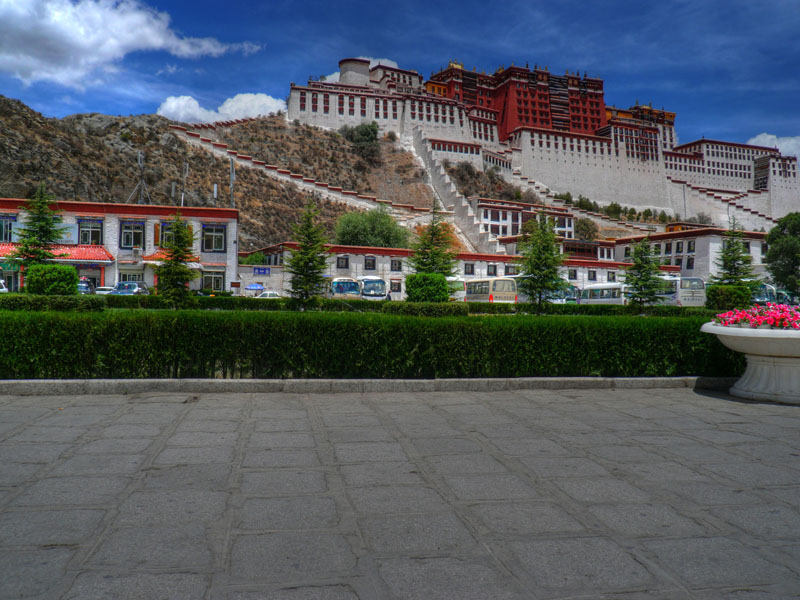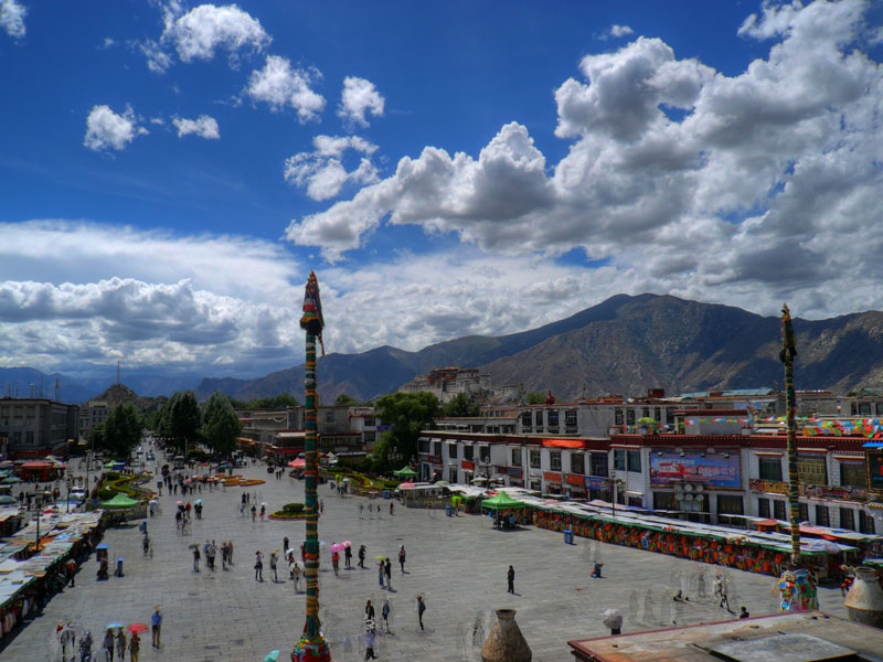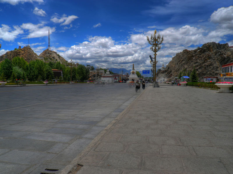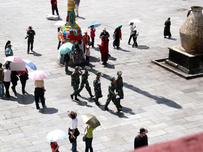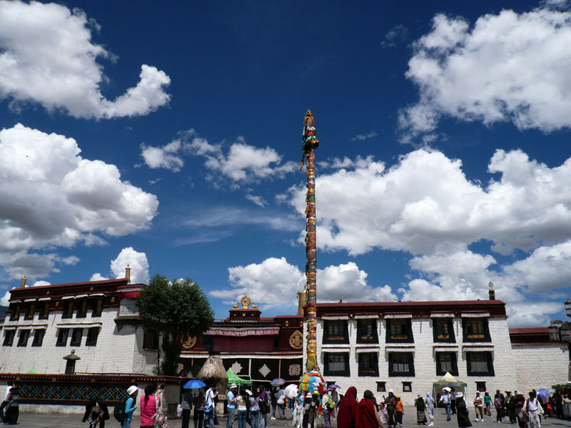 ジョカン寺。強い日差しのために非常に暑い。標高3600mとは思えない。