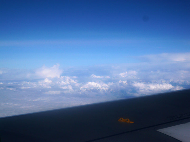 こっちは9000mを飛行しているのだが、結構高い場所に山が見えている。