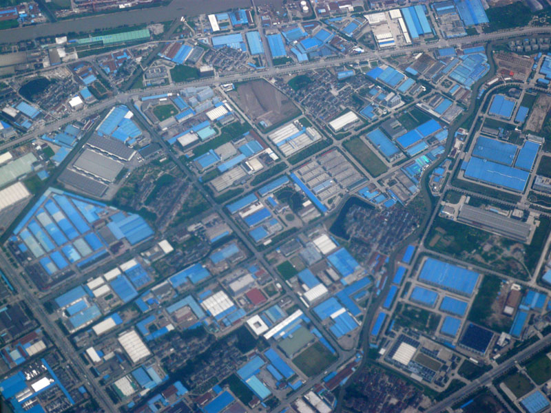 中国はこういう青色の屋根の建物が多い。